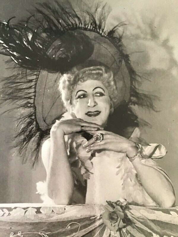 Whilst Dougie may never be the recipient of a crown for political correctness by 21C standards, he could nonetheless still teach today’s young British drag artists a lesson or two. Closer examination of his astute performance skills reveals an excellent ability to craft minimal costume into colloquial characterisation (he notably had an early career in fashion working for the designer Charles Alias, whose firm specialised in pantomime and fantasy costumes). And of course, he was a linguistic acrobat, the master of using the classic– yet frequently denigrated– comedic tool of double entendre to navigate otherwise unspeakable sexual taboos through irreverent, bawdy wordplay. Is it too much to suggest that Dougie’s refined vulgarity literally played a part in the movement towards gay liberation? In queer historian Matt Cook’s superb publication London and the Culture of Homosexuality, 1885-1914, the author reveals 1920s London to have had a thriving queer culture. This was the context within which Dougie began his career, and without a doubt, he would have been both a part of, and influenced by, this scene during the formative stages of his practice. The affection afforded to Dougie by those outside of the gay community was of broader benefit to softening attitudes towards those within it. His confident yet coded, wink-wink, nudge-nudge humour parodying the ins-and-outs of sex and gender displayed his control over the art of creating a ‘secret’ bond between performer and audience, regardless of class, gender or sexuality. Put simply, sharing a good old cheeky giggle is an effective way of inadvertently dissolving prejudices. Many a gay man has navigated his way through danger with a sharp tongue and sheer queer quick wittedness. Dougie’s drag was a profoundly revolutionary homosexual act, precisely because it was centre stage and reaching out to mainstream audiences en masse. It was more than a dirty joke– it was a dalliance in defiance.