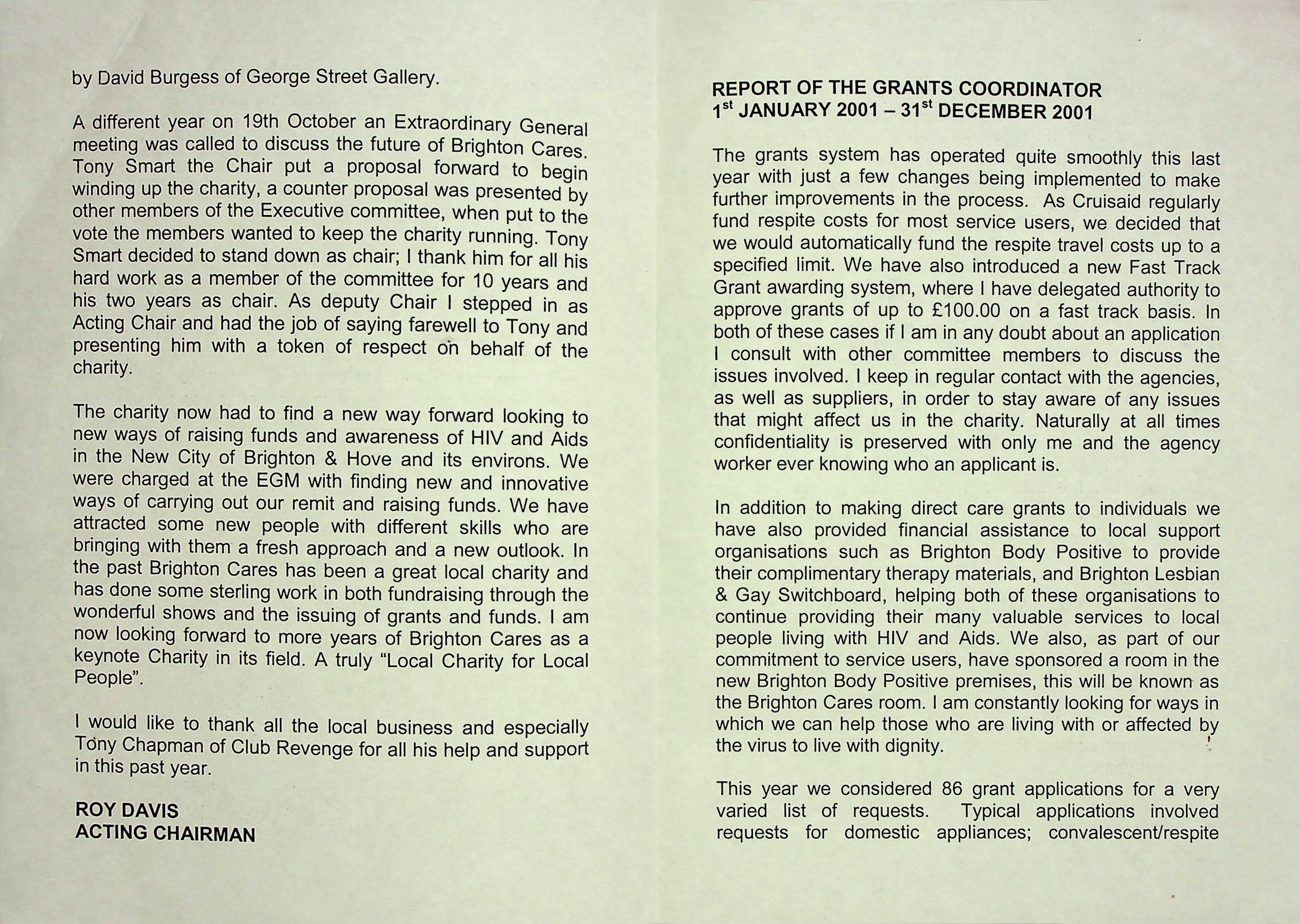 Brighton Cares Annual Report, 2001