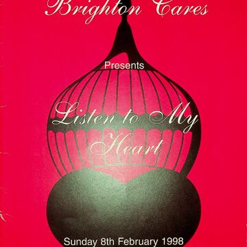 Listen to My Heart 9th annual fundraising concert souvenir programme for the event on 8th February 1998 at Brighton Dome. The event raised money for people in Brighton and Hove living with HIV/AIDS.