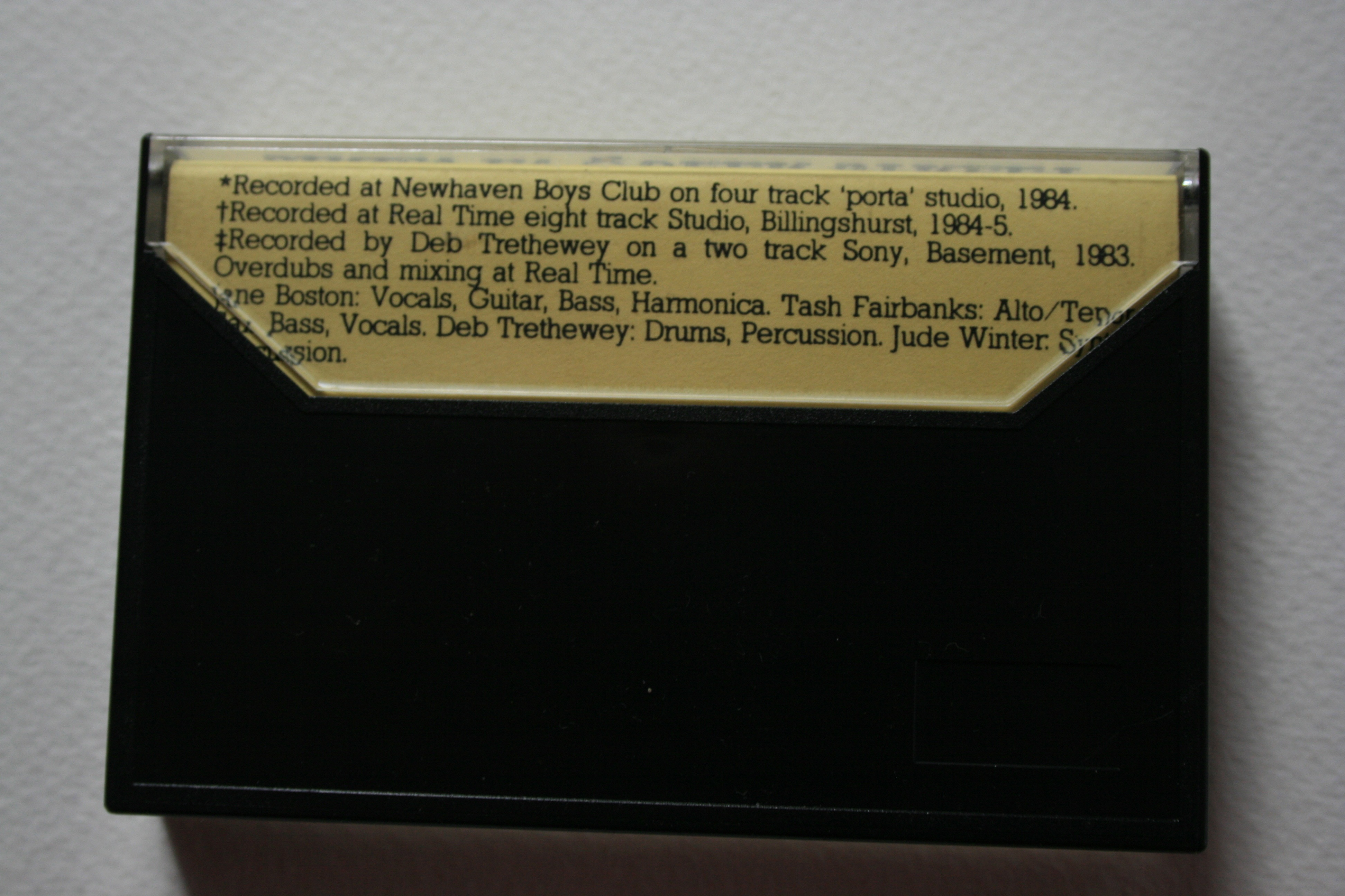 This cassette was a mixture of home recording done by Deb Trethewey on a two track Sony reel-to-reel tape recorder, as well as some professionally recorded tracks at recording studios.