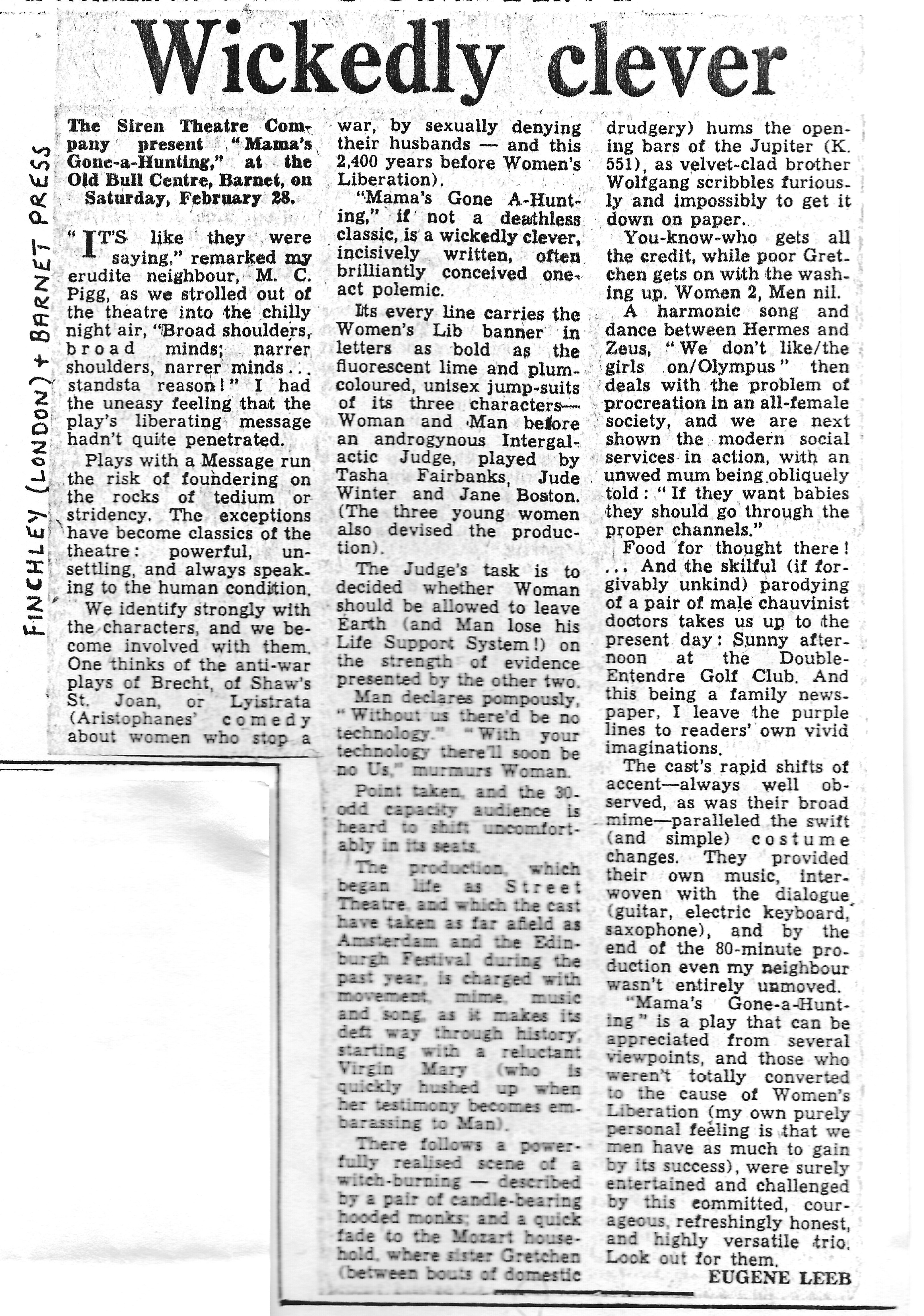 The Finchley & Barnet Press review of ‘Mama’s Gone A’Hunting