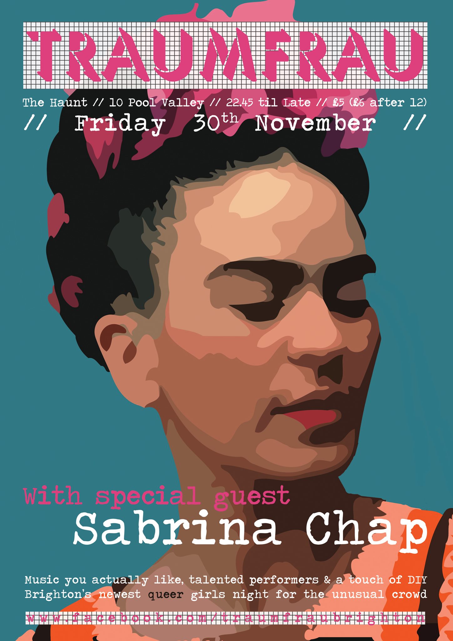 The digital poster for Traumfrau queer party event which took place on the 30th of November 2012 at The Haunt.