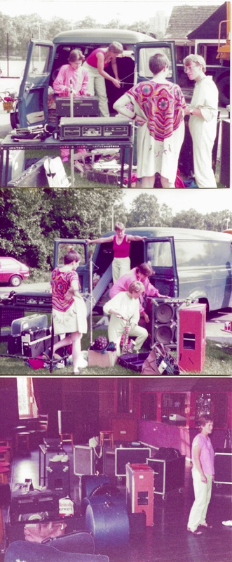 This shows Siren loading up the van after a performance of ‘Mama’s Gone a-Hunting’, still wearing their costumes. Often, after a performance, the get-out had to be very fast, with no time to change. This was an outdoors, daytime performance.
